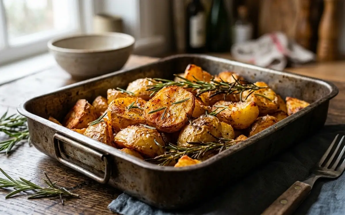 O segredo é secar bem as batatas com um pano de prato após cortá-las e antes de temperar. Além disso, certifique-se de que a assadeira esteja bem untada ou use papel manteiga de boa qualidade. Evite amontoar as batatas; elas precisam de espaço para o ar quente circular e dourar por igual.